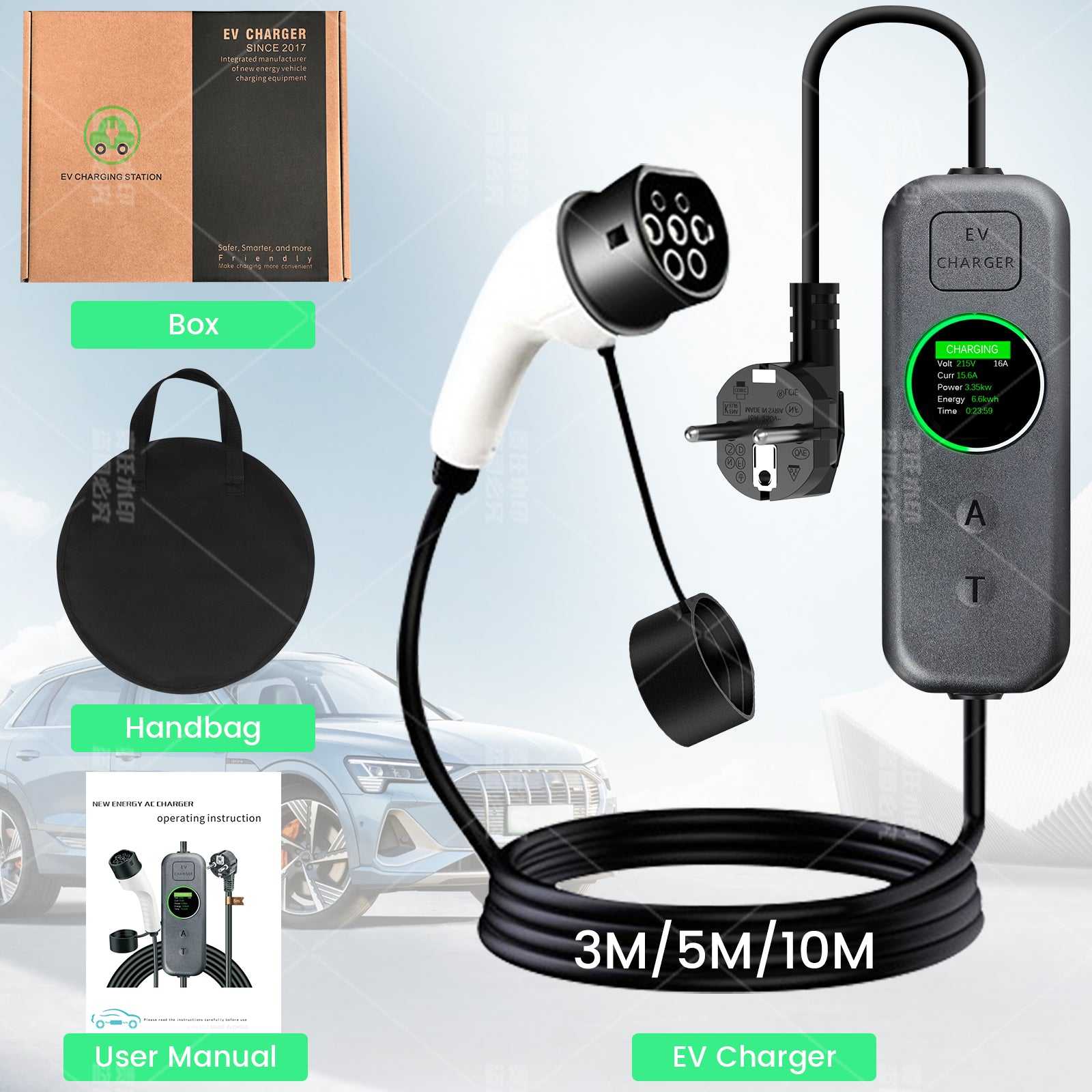 R: No necesita herramientas ni configuración: ¡es listo para usar! Simplemente conecte el enchufe a una toma de corriente y el otro extremo a su coche para empezar a cargar.